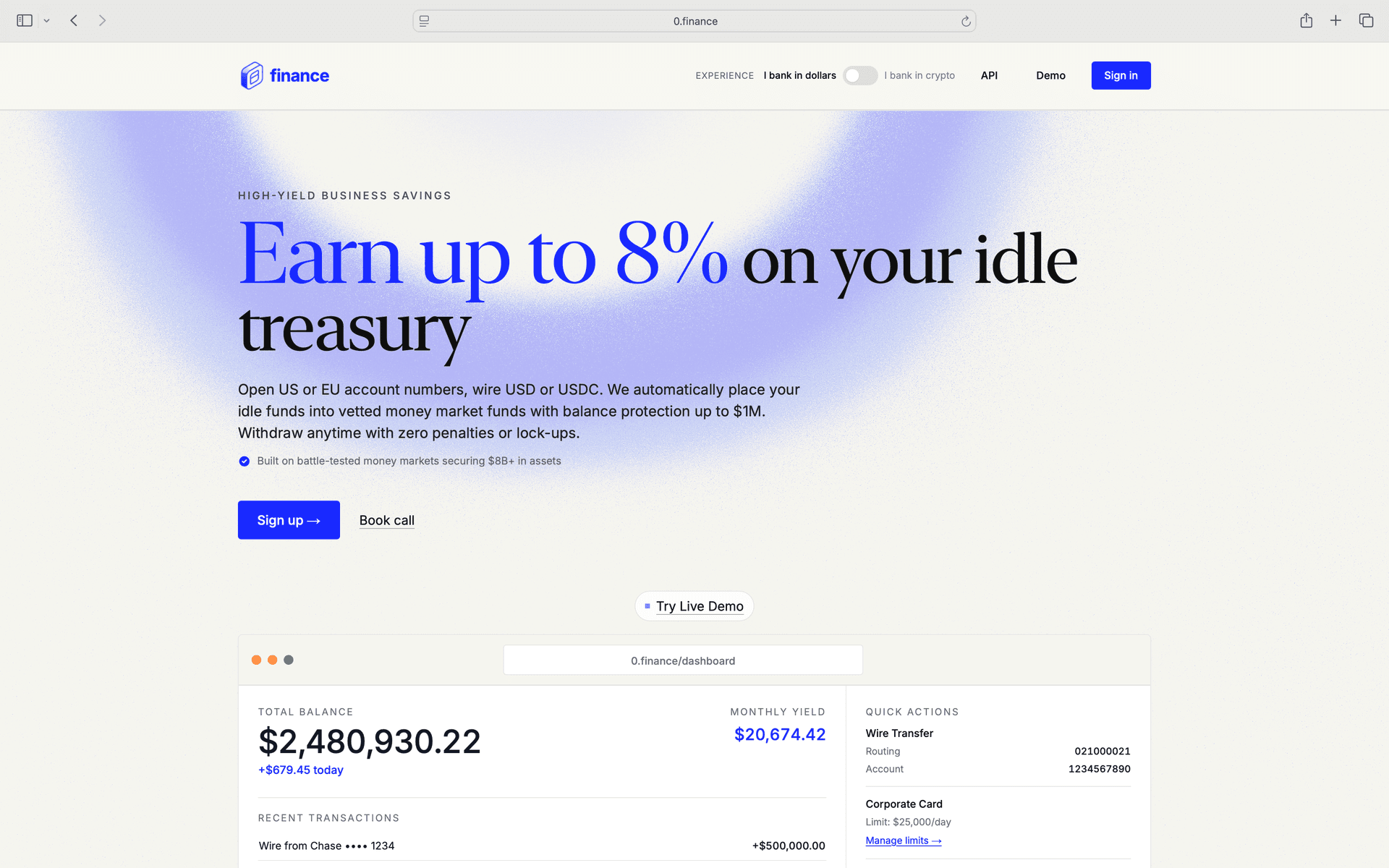 0 Finance is building the first fully open source, forkable business savings account; letting companies send and receive money like a traditional bank while earning higher on-chain yield. The project ships updates daily and has already attracted strong early interest, including $2M in LOIs from startups.