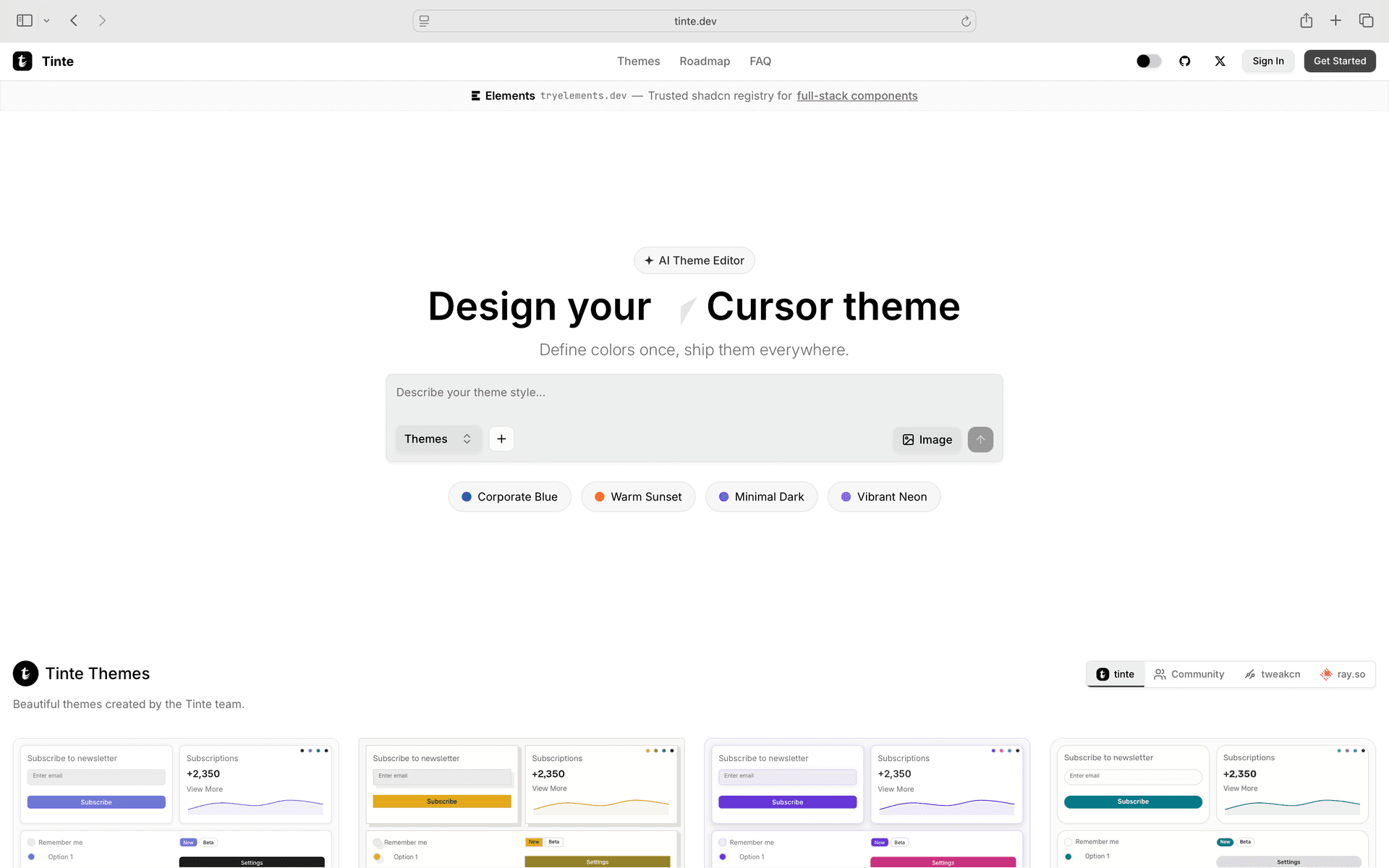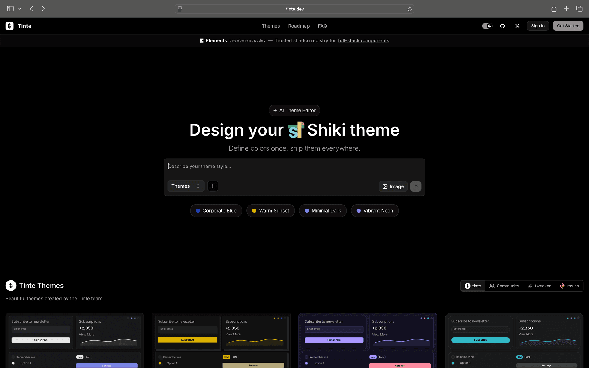 Tinte is an open-source theme generator that lets developers design, visualize, and share color themes instantly for VS Code, Shadcn/UI, and more. The project has grown to 2,000 active users, 5K+ visitors, 468 GitHub stars, and a creative community submitting hundreds of themes—and has even inspired derivative tools like TweakCN.