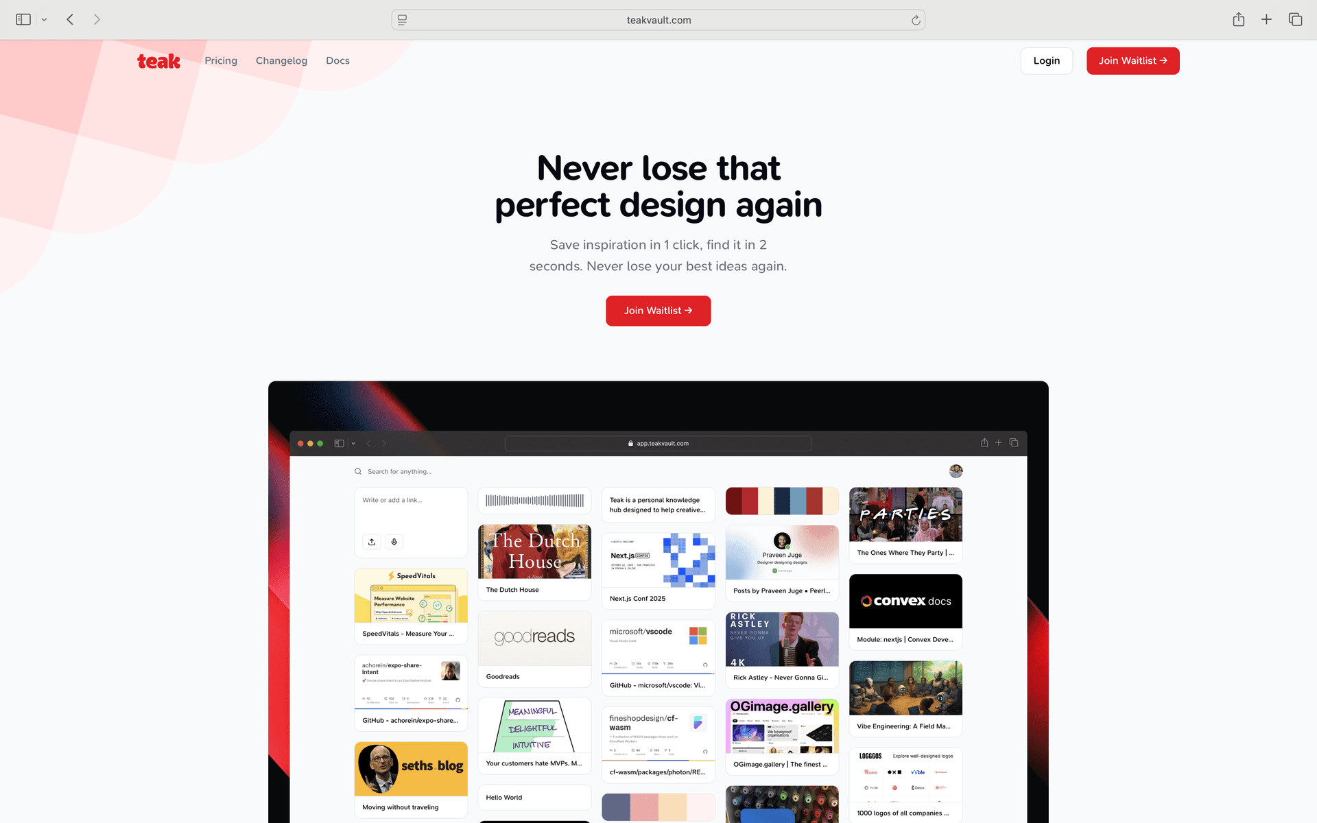 Teak is an open, privacy-friendly tool that lets designers capture and preserve visual inspiration before it disappears, built for creatives who care about how their ideas look and feel. It’s community-driven, easy to build on, and designed to support visual thinkers, designers, and developers in keeping their inspiration alive.