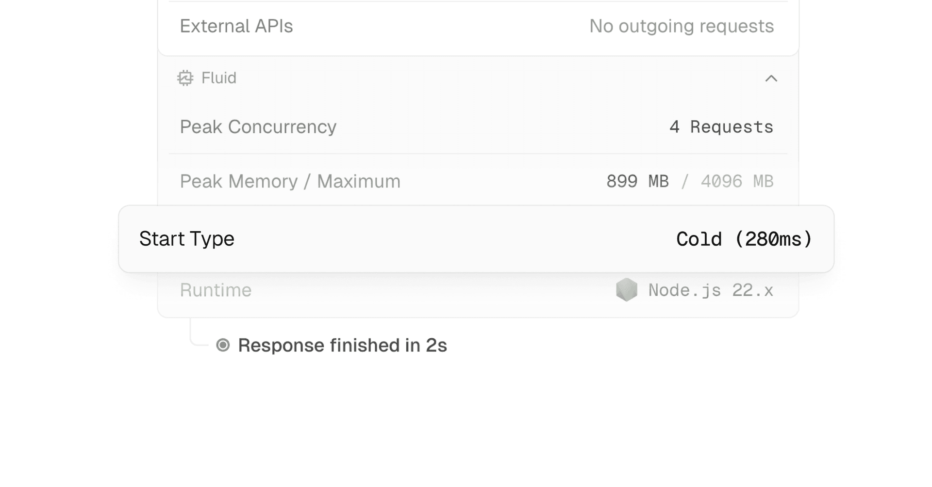 For any request involving a Vercel Function invocation, you can now view the function start type in the right hand details panel of Runtime Logs.