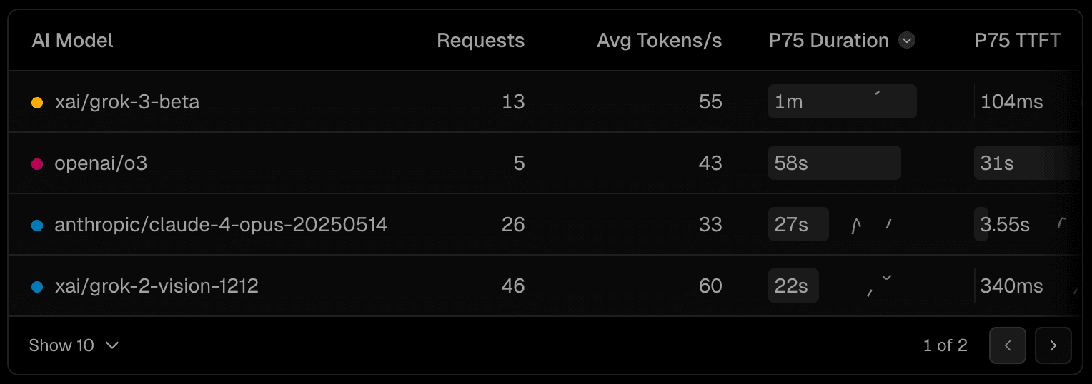 The Requests by Model chart shows the number of requests made to each model over time. This can help you identify which models are being used most frequently and whether there are any spikes in usage.