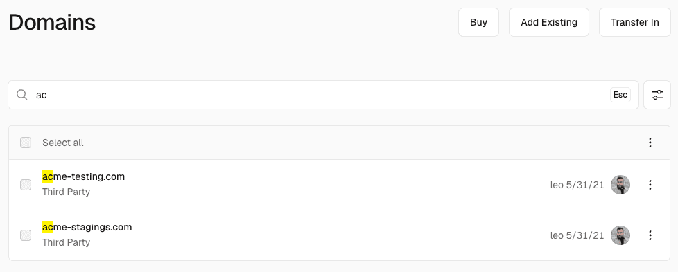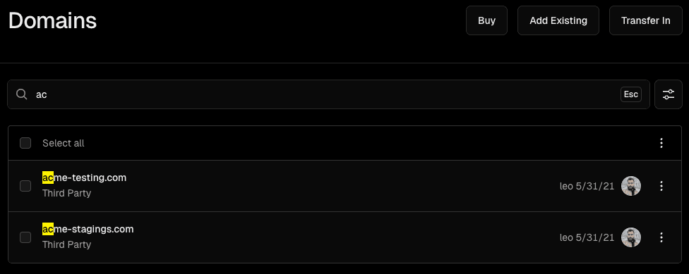 - Creator - The person who created the domain, indicated by their avatar and username and include the creation date