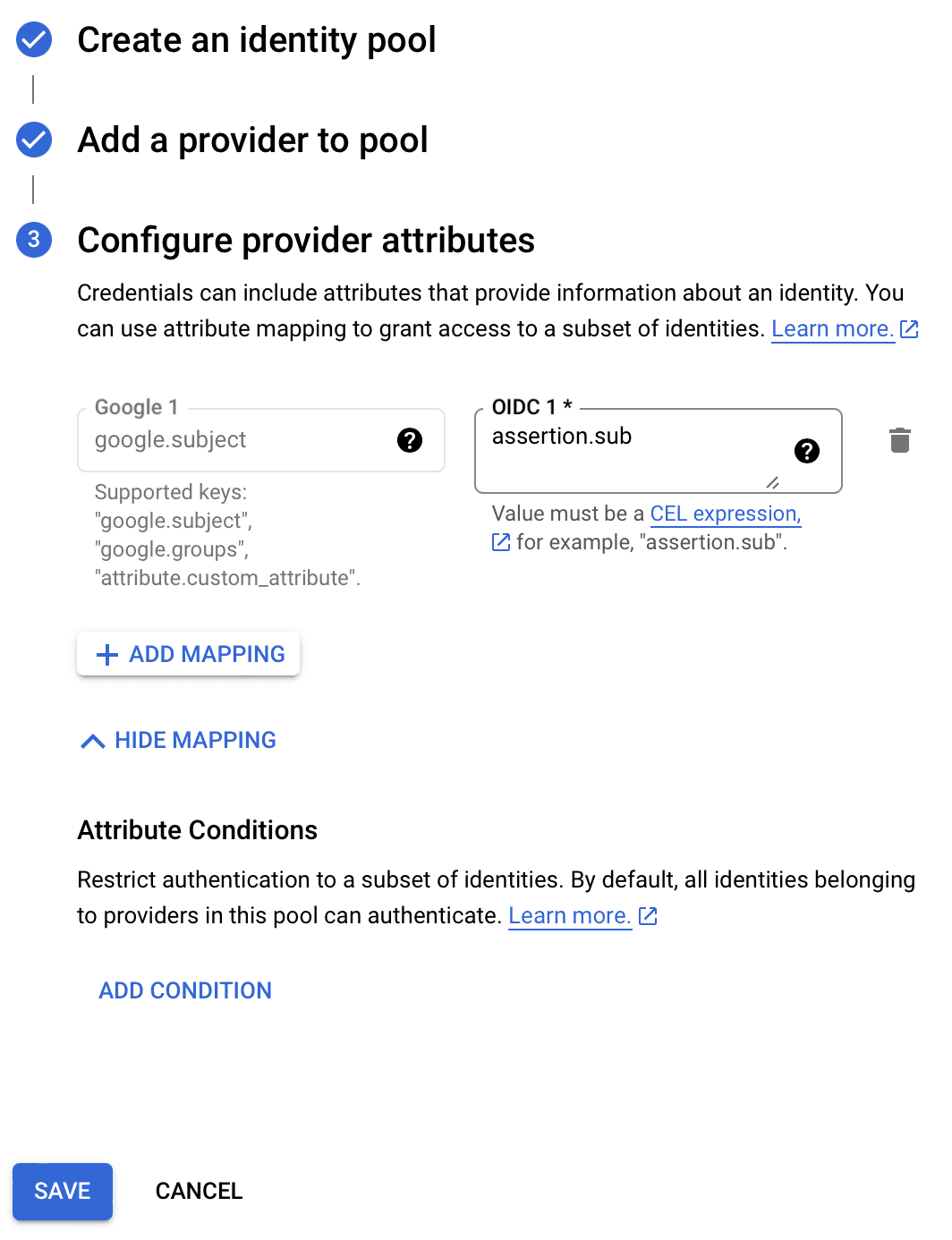 - Paste in the IAM Principal copied from the pool details page in the Service account users role field.