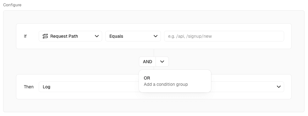 - Update the Custom Rule condition if needed. Once you're happy with the behavior, update the rule with a challenge, deny, or bypass, or rate limit action