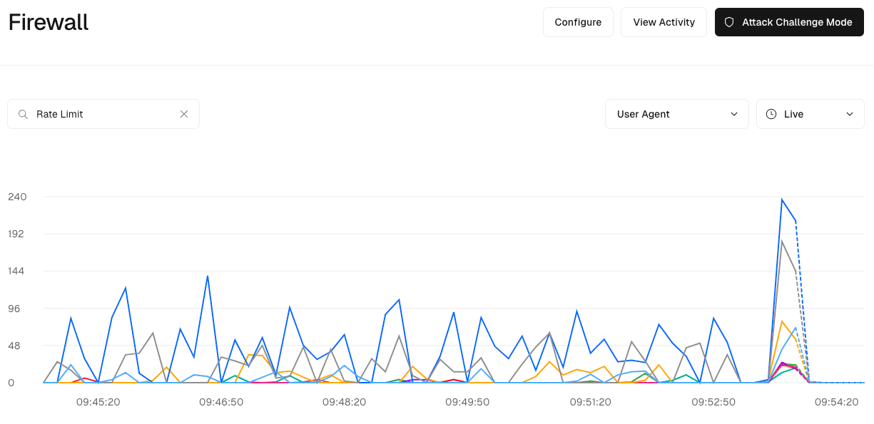 - Go to the Firewall overview page, select your Custom Rule from the traffic grouping drop-down and select the paramater(s) related to the condition(s) of your Custom Rule to observe the traffic: